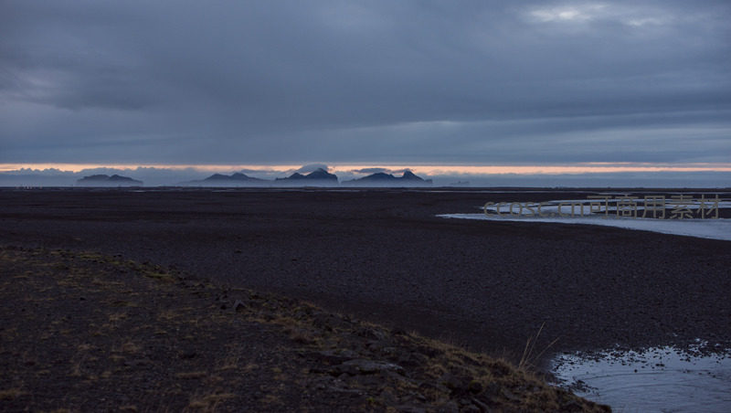 厚重乌云低垂于地平线上,荒原广袤无垠,远处岛屿若隐若现,渲染出苍茫天地间的孤寂之美。