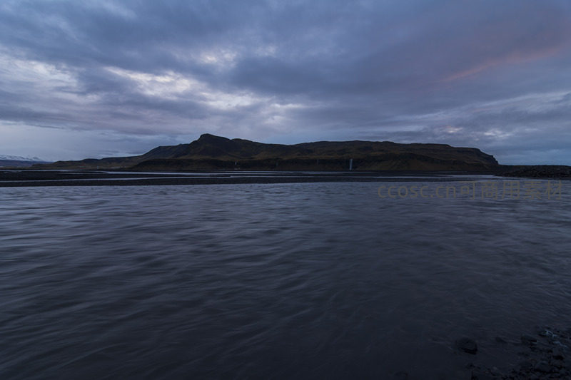 宽阔河面如镜,映照着灰蓝交织的云层与远处连绵山体,微风轻拂水面泛起涟漪,整体色调沉静而富有诗意。