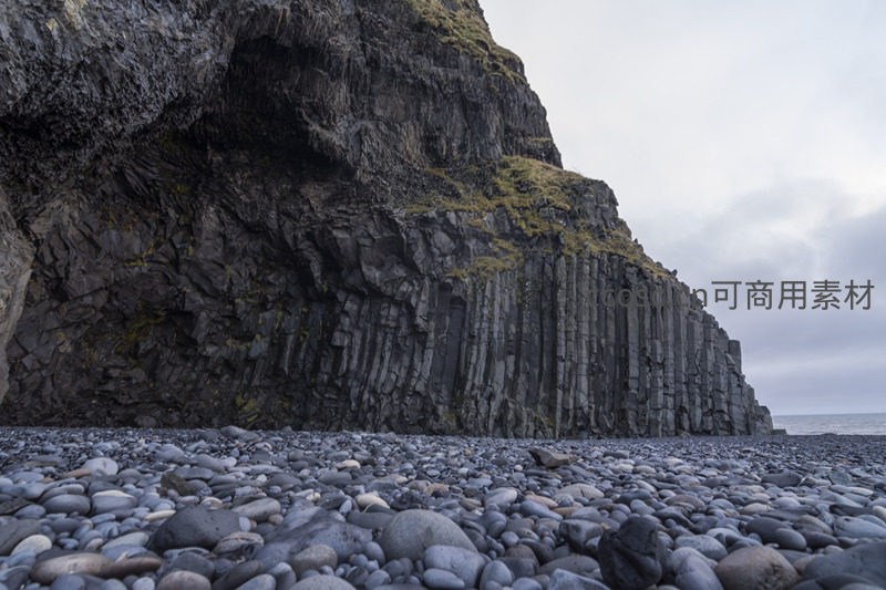 灰色卵石铺就的海岸边,一堵由无数六棱柱组成的巨大玄武岩墙拔地而起,与远方海天相接,气势恢宏。