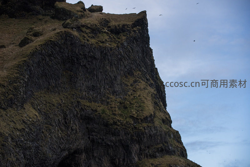 悬崖峭壁上的苔藓与翱翔飞鸟