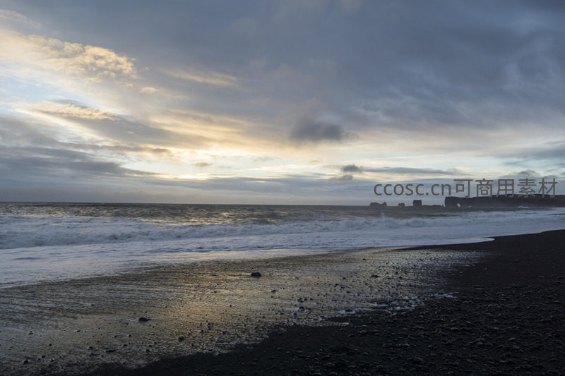 暮色中的黑沙滩波涛汹涌