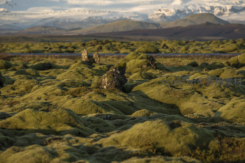 苔藓覆盖的熔岩原野,远山如画