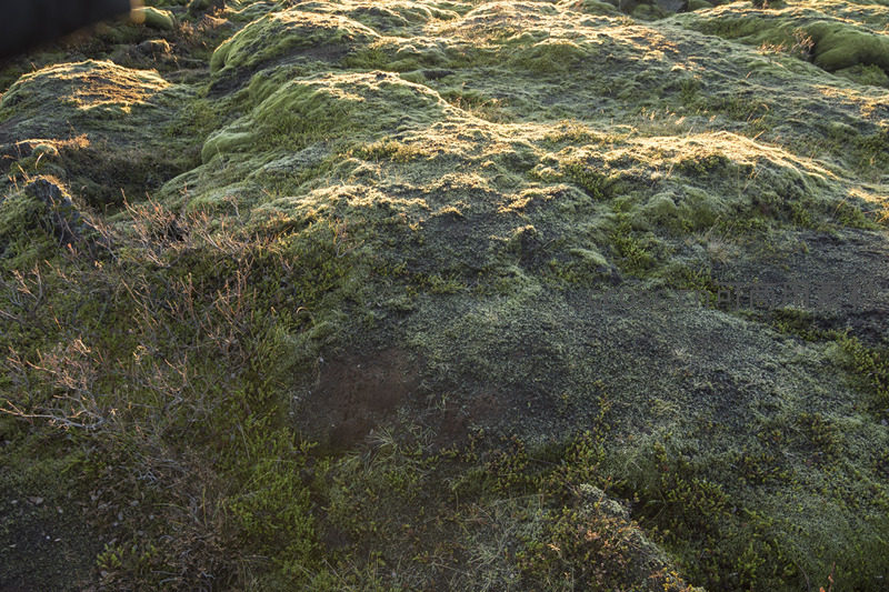 在岩石与土壤交界处,苔藓与低矮灌木共同生长,阳光洒落其上,形成明暗对比,凸显原始地貌中顽强而和谐的生命景象。