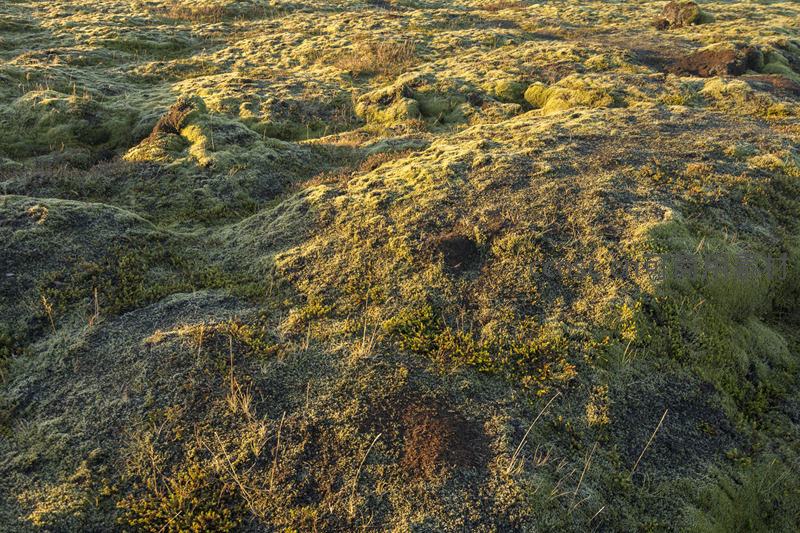 晨曦中的苔藓坡地,金光洒满自然画卷
