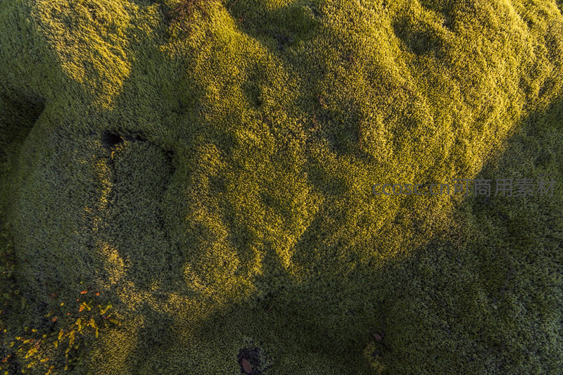 俯瞰苔藓地表,光影交织如抽象艺术画布