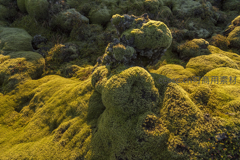 苔藓包裹岩石,自然雕琢的绿色雕塑群