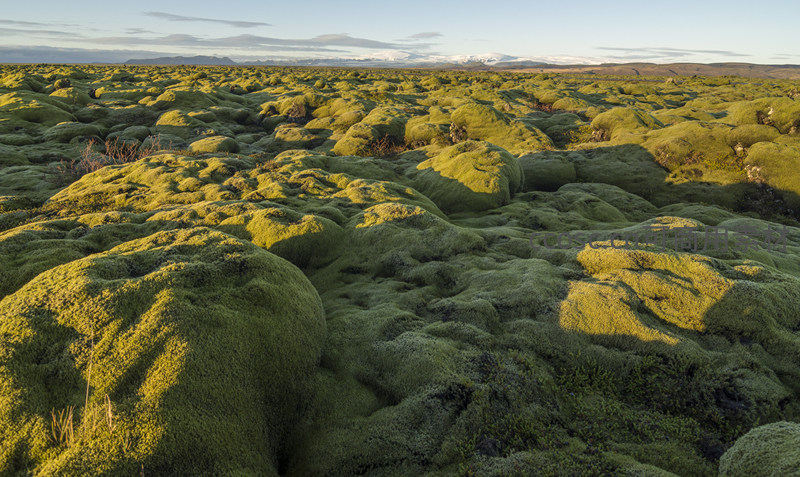 从高空俯瞰,整片大地被翠绿苔藓包裹,宛如一块巨大的天然地毯铺展至天际,远山云影倒映其上,展现出大自然鬼斧神工的宏伟画卷。