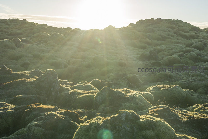 斜射的阳光巧妙勾勒出覆盖苔藓的岩石肌理,明暗交错间凸显地貌的立体感与质感,仿佛大地披上了柔软的绿色外衣,在光影中诉说着岁月的故事。
