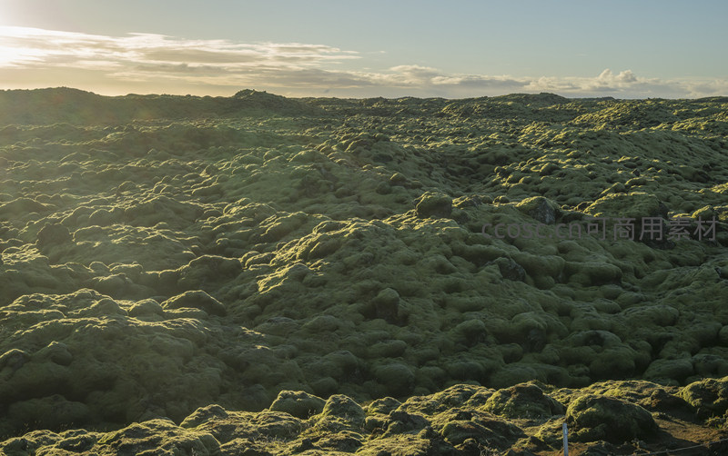 暮色中的苔藓熔岩场如绿海波涛