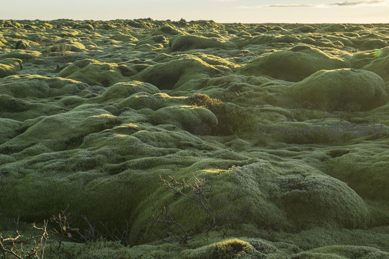 镜头拉近,茂密的苔藓如绒毯般包裹着地面,几根枯枝点缀其间,形成鲜明对比,展现了微小生命在严酷环境中蓬勃生长的景象。