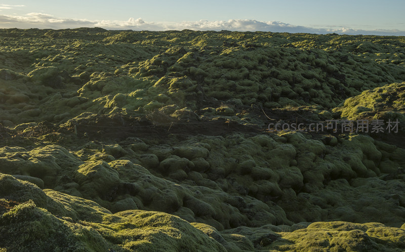 广袤的火山地貌被厚实的苔藓覆盖,阳光穿透云层洒下斑驳光影,营造出苍凉而富有生机的野外景象,令人敬畏自然之力。