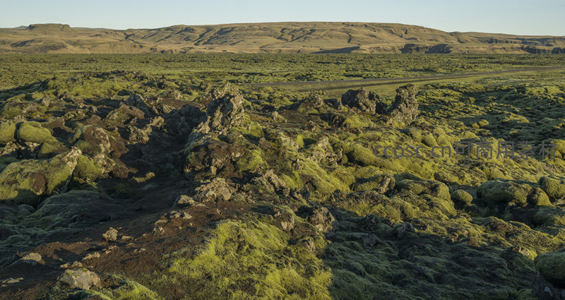 在看似贫瘠的火山熔岩之上,绿色苔藓蓬勃生长,形成一片片生机盎然的绿洲,彰显自然界的坚韧与奇迹。