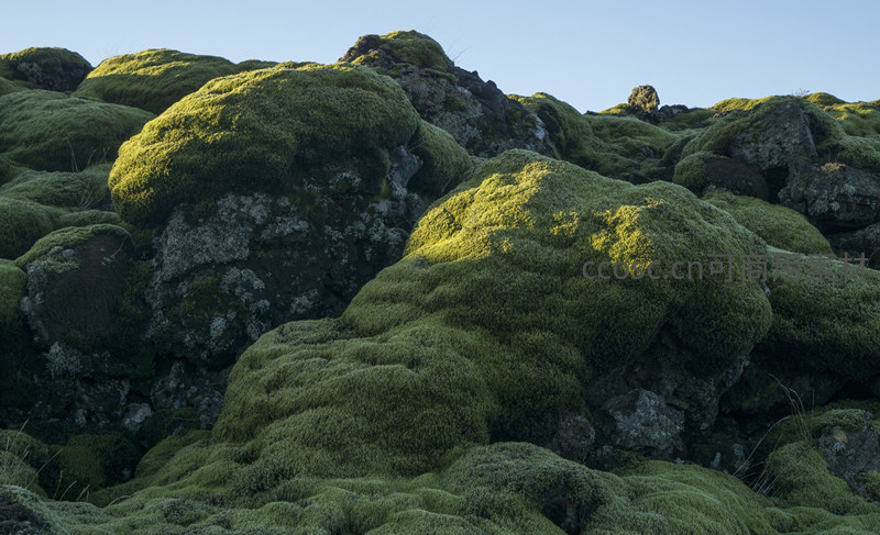 苔藓覆盖的火山岩地貌,绿意盎然
