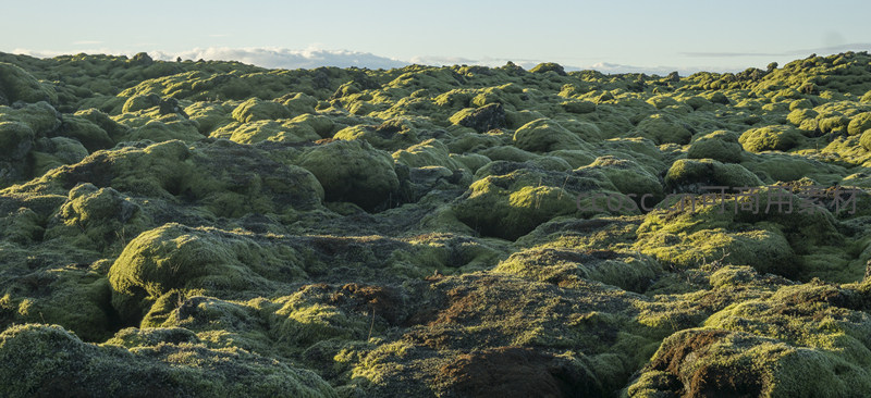 连绵苔藓地貌,如绿色波浪起伏