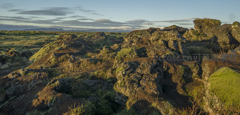 远眺苔藓火山岩平原与远山