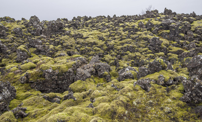 崎岖不平的黑色火山岩上铺满柔软的绿色苔藓,如大地披上绒毯,无声诉说着自然在严酷环境中的顽强与美丽。