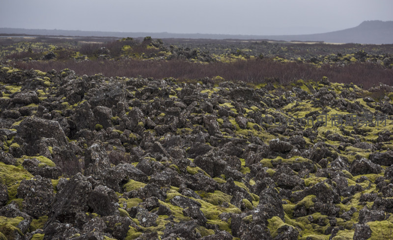 大片凝固的熔岩形成起伏的平原,表面铺满柔软的绿色苔藓,宛如大地披上了天然的绒毯。