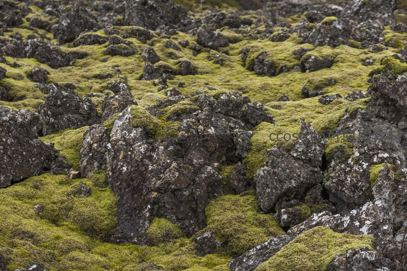 广袤熔岩原野被柔软青苔温柔覆盖,粗糙与柔嫩交织,营造出静谧而充满生机的原始自然氛围。