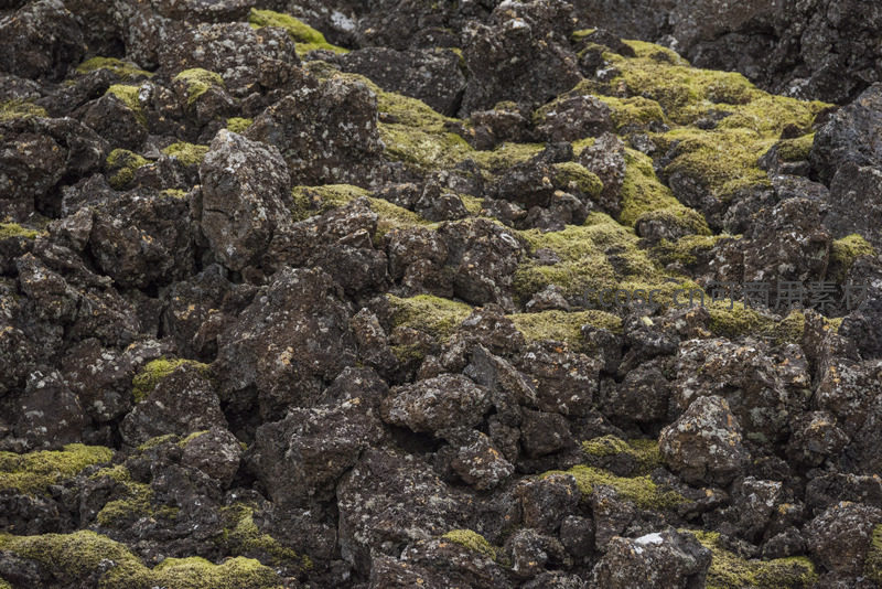 镜头聚焦于火山岩缝隙间顽强生长的苔藓,细节纹理清晰,彰显生命在严酷环境中绽放的坚韧之美。