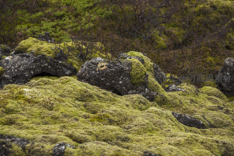绵延起伏的苔藓地毯,覆盖着黑色岩床