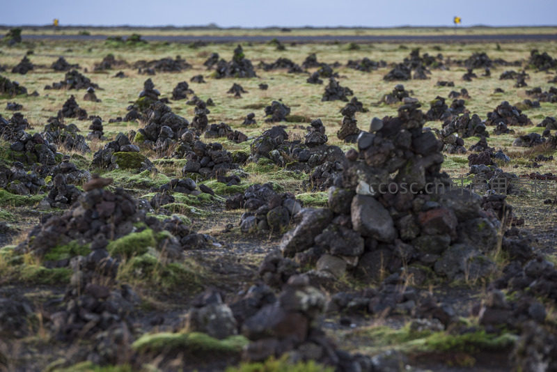 从远处俯瞰,无数火山岩堆如星点般散落在无垠的苔原之上,构成一幅充满原始力量与宁静之美的大地画卷。