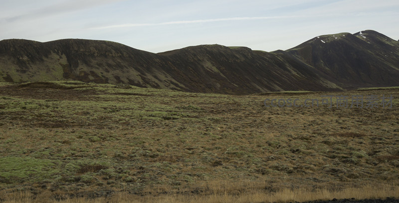 连绵起伏的火山岩山丘覆盖着稀疏的植被,在淡蓝色天空下显得苍凉而壮阔。这片未被开发的荒野,散发着原始而宁静的气息。
