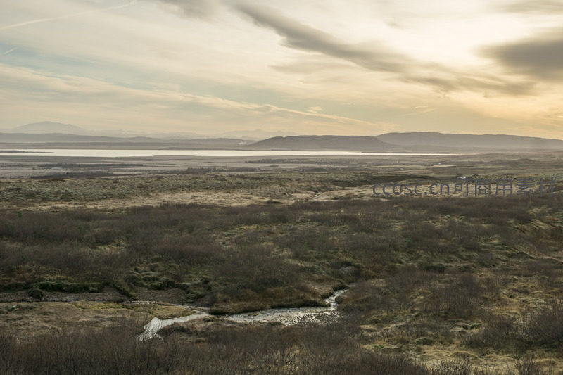 暮色苍茫,溪流轻抚苔原大地