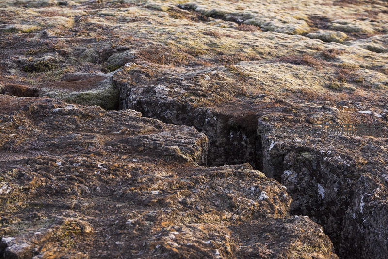 镜头拉近,聚焦于布满青苔的火山岩缝隙,粗糙的岩石纹理与柔软的苔藓形成鲜明对比,阳光斜照下,每一处细节都诉说着地质变迁与生命顽强的故事。