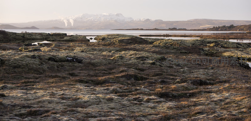 苔原地貌与远山蒸汽的静谧风光