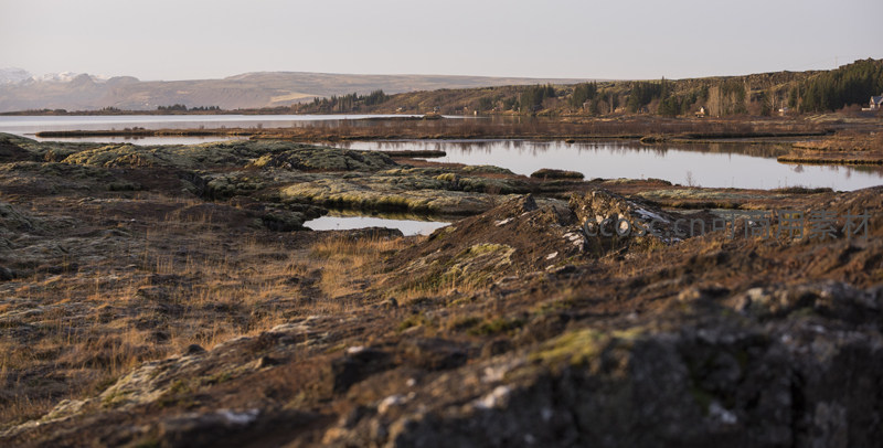 苔藓覆盖的火山岩地貌与静谧湖泊