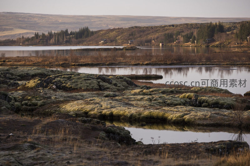 苔藓覆盖的湖畔湿地静谧风光