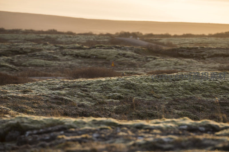 夕阳西下,金色的光芒温柔地洒在覆盖着厚厚苔藓的广袤原野上,远处的山峦轮廓柔和,营造出一片静谧而壮丽的自然画卷。
