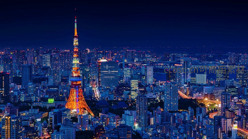 东京塔在夜幕下熠熠生辉,彩色灯光勾勒出塔身轮廓,四周高楼林立,万家灯火交织成一片璀璨星河,展现现代都市的活力与浪漫。