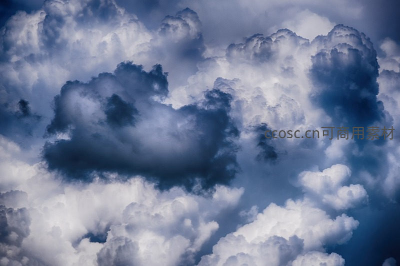 厚重的积雨云层在深蓝色天幕下翻滚,光影交错间展现出大自然磅礴而神秘的力量。