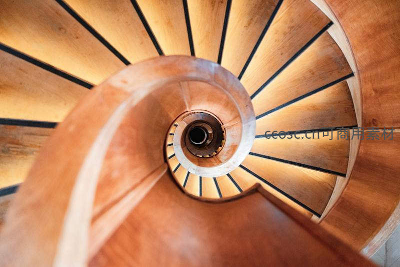 俯瞰木质螺旋楼梯,光影交错的几何之美