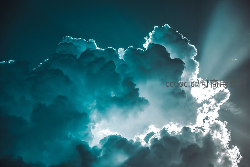 厚重的深青色积雨云翻滚涌动,一束强光穿透云隙洒落,营造出史诗般庄严而富有张力的视觉效果。