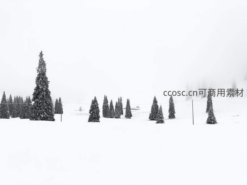 雪中松林,雾霭弥漫,黑白世界纯净空灵
