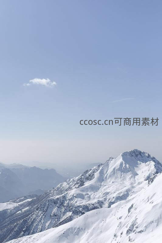 皑皑白雪覆盖的山峰在湛蓝天空下显得格外雄伟壮观,远处层峦叠嶂,云淡风轻,尽显大自然的宁静与辽阔。