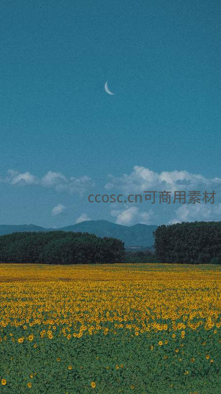 向日葵海映新月蓝天如洗