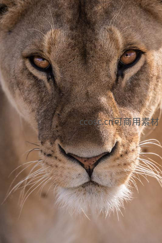 镜头聚焦于雌狮锐利而沉静的双眼,细腻毛发与胡须清晰可见,传递出王者般的威严与野性之美。
