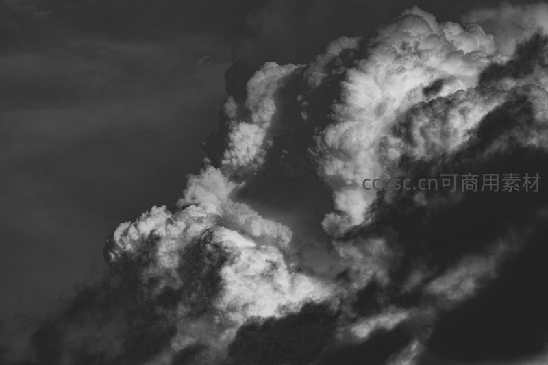浓密的积雨云在黑白影调下展现出强烈的戏剧张力,光影交错间仿佛蕴藏着自然的磅礴力量。