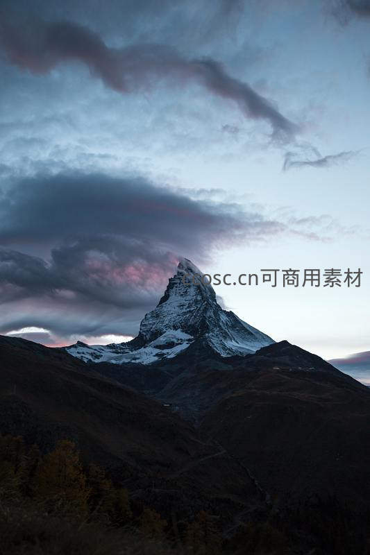 暮色中的马特洪峰,云霞如画