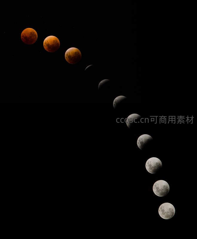 记录了月全食从初亏到复圆的全过程,血月与灰月在深邃夜空中依次排列,展现了宇宙运行的神秘与壮美。