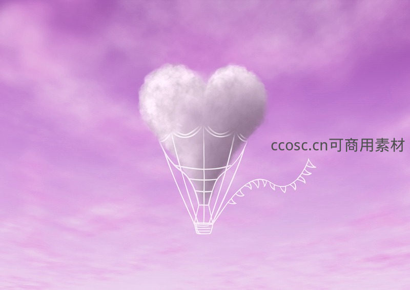 心形云朵热气球翱翔梦幻紫空