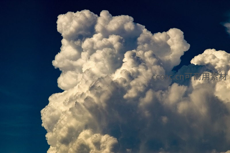 一朵巨大的积雨云在深邃的蓝色天空中拔地而起,其蓬松的白色顶部和厚重的阴影预示着即将到来的风暴。