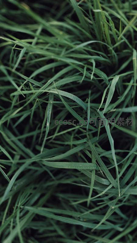 近距离捕捉茂密青草的细腻纹理,叶片交错重叠,在柔和光线下呈现出深浅不一的绿色层次,传递出大地原始而宁静的生命质感。