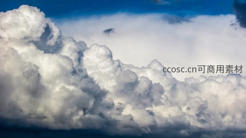 大片厚重云团在深蓝天空中翻滚,层次分明,光影对比强烈,营造出震撼的视觉冲击力。