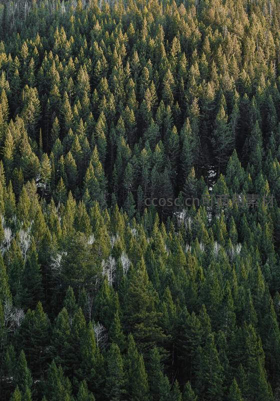 从高空俯瞰广袤无垠的针叶林,层层叠叠的绿色树冠连绵起伏,偶有白桦点缀其间,展现出原始森林的壮阔与生态之美。