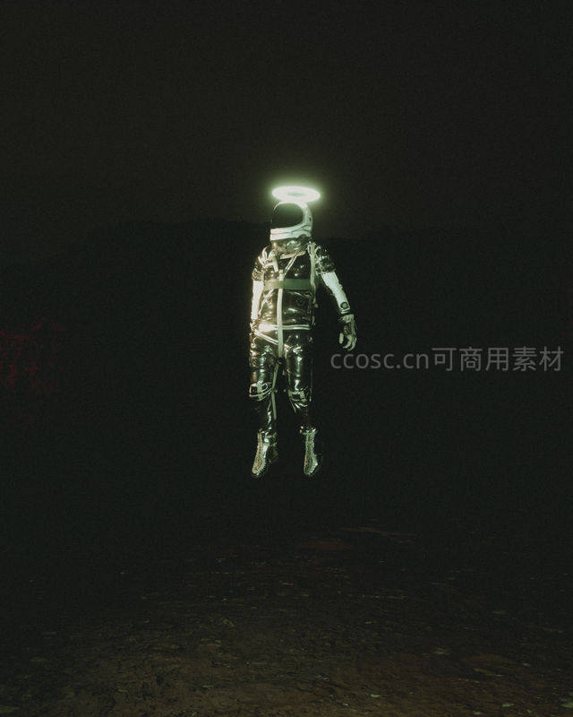 黑暗中的宇航员,头盔光环照亮孤独旅程