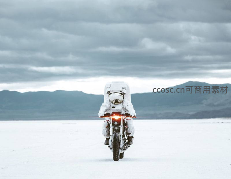 宇航员骑摩托穿越雪原